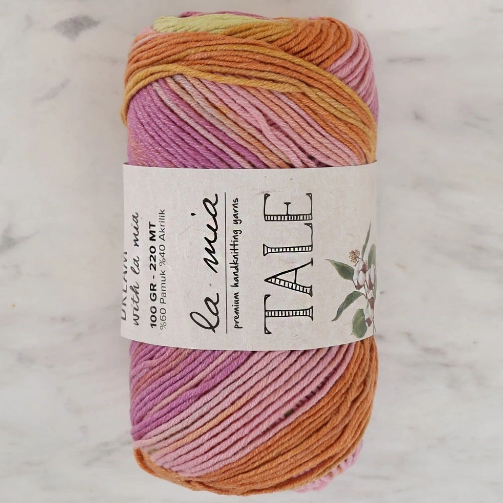 La Mia Markası'na ait yepyeni ürün TALE ile hayalini yarat.Geçişli renk tonlarının hakim olduğu bu seri ile havanız değişecek. Yumuşak ve kolay tüylenmeyen yapısı, güzel renk tonları ile örgüleriniz artık daha gösterişli. Tüm örgü modellerinizde güvenle tercih edebilirsiniz.