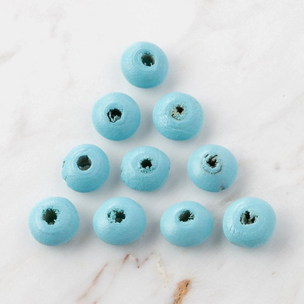 Loren 10 Adet Mavi Yassı Ahşap Boncuk