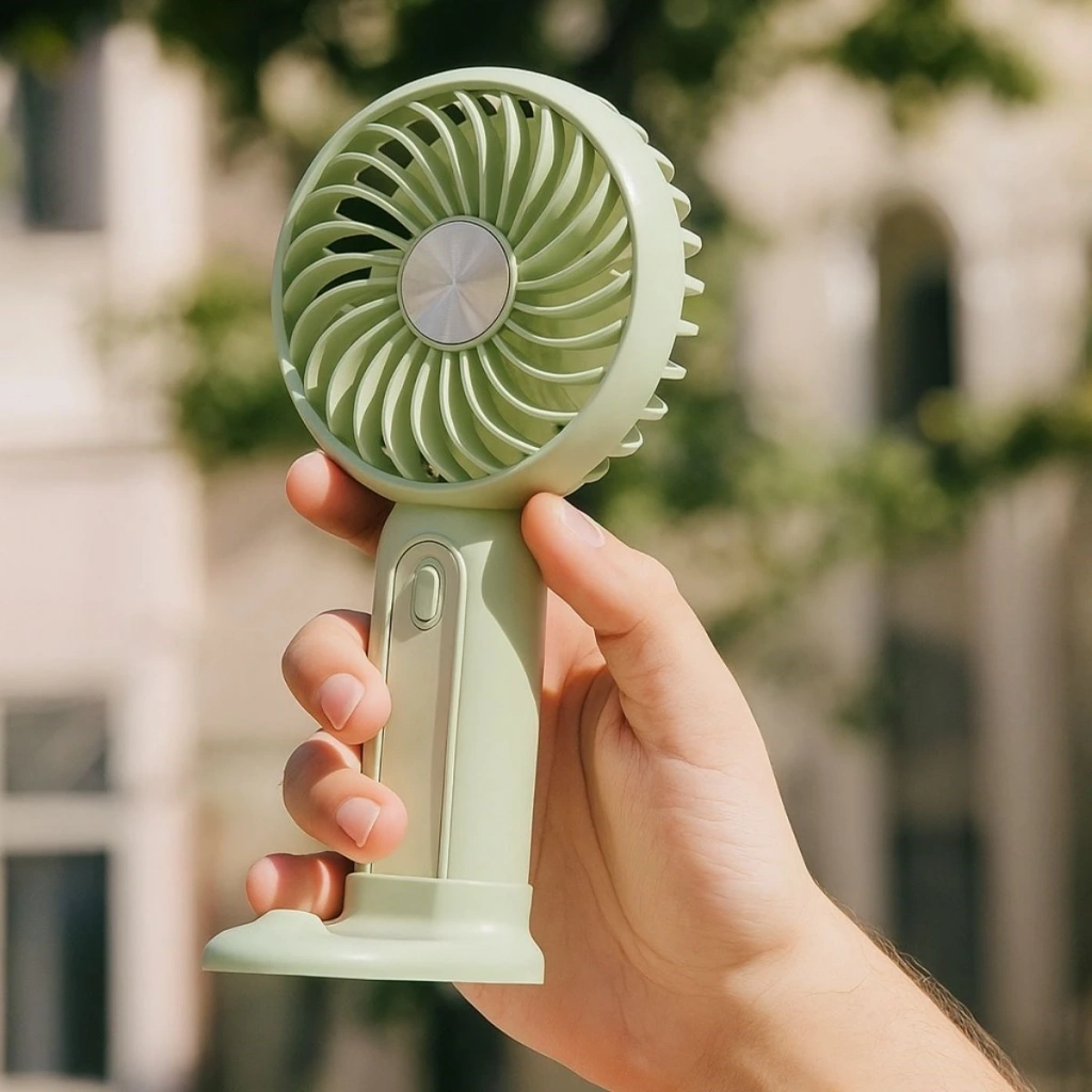 Hem masa üzerinde hem de elde taşınabilir olarak kullanılabilen bu standlı, USB ile şarj edilebilen çanta tipi el fanı, hayatınızı kolaylaştırır.