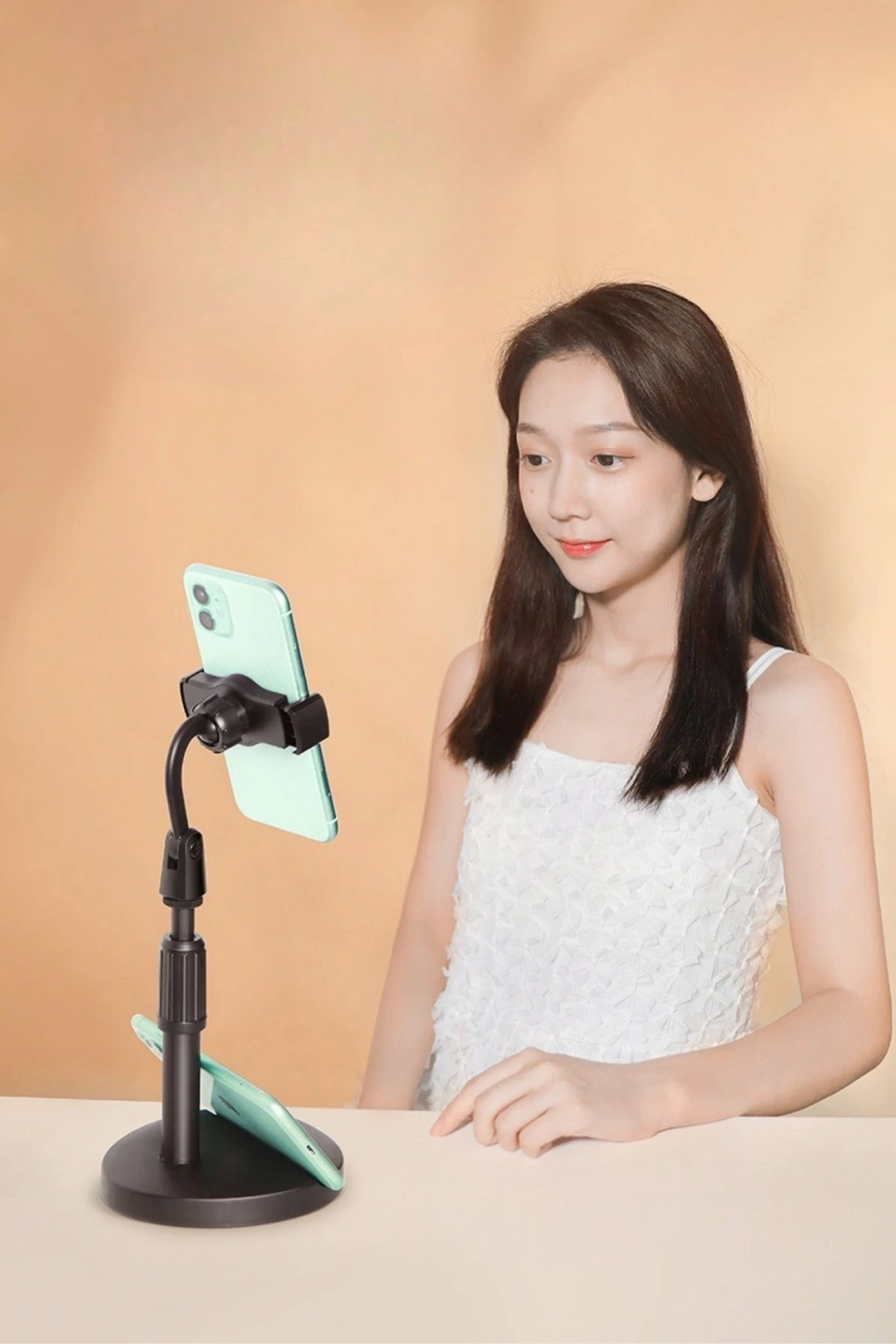 Masa Üstü Tablet ve Telefon Tutucu Plastik Aparat Siyah Telefon Standı
