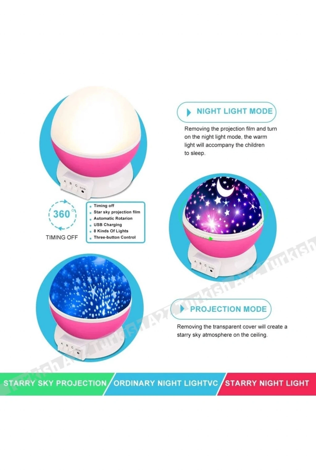 Mavi Dönen Renkli Ay Yıldızlı Gökyüzü Yansıtmalı Projeksiyon Gece Lambası Çocuk Bebek Parti Odası