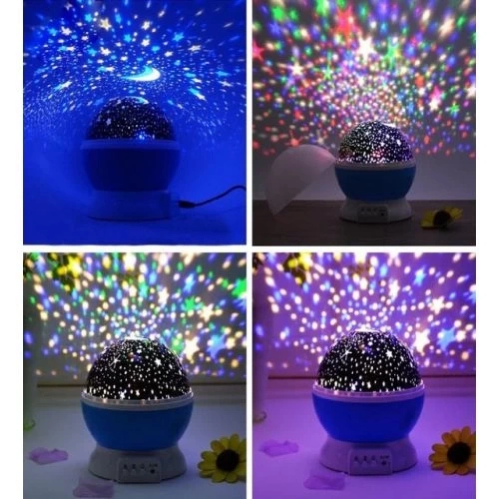 Mavi Dönen Renkli Ay Yıldızlı Gökyüzü Yansıtmalı Projeksiyon Gece Lambası, evinizin atmosferini anında değiştirecek harika bir dekorasyon ürünüdür. Çocuk odalarında, bebek odalarında veya partilerde kullanarak eşsiz bir ambiyans yaratabilirsiniz.