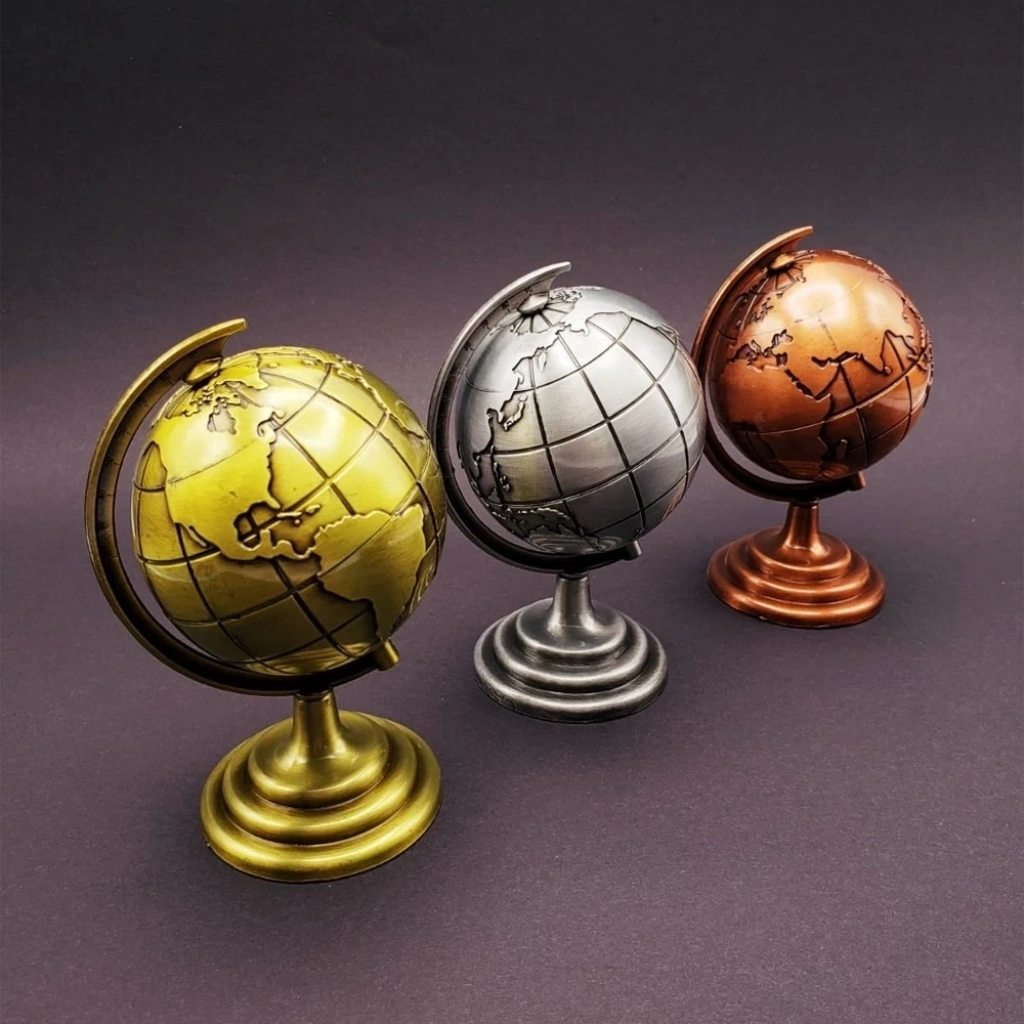 Metal dekoratif dünya küresi ofisinizde masanızda kullanabileceğiniz veya sevdiklerinize verebileceğiniz şık bir hediye.