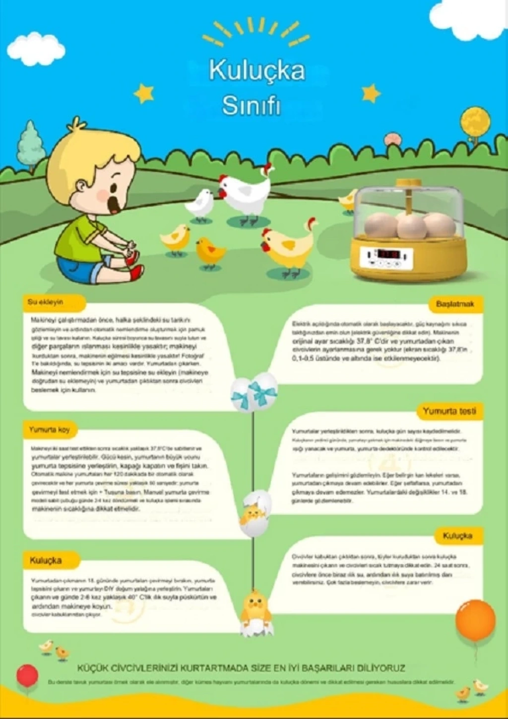 18 Mini Yumurta Kapasitesi: Küçük ölçekte üretim yapanlar için idealdir. Bu kapasite, evcil hayvan sahiplerine veya küçük çiftliklere uygun miktarda civciv sağlar.