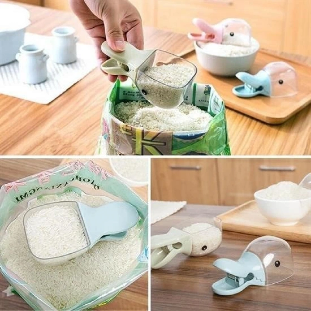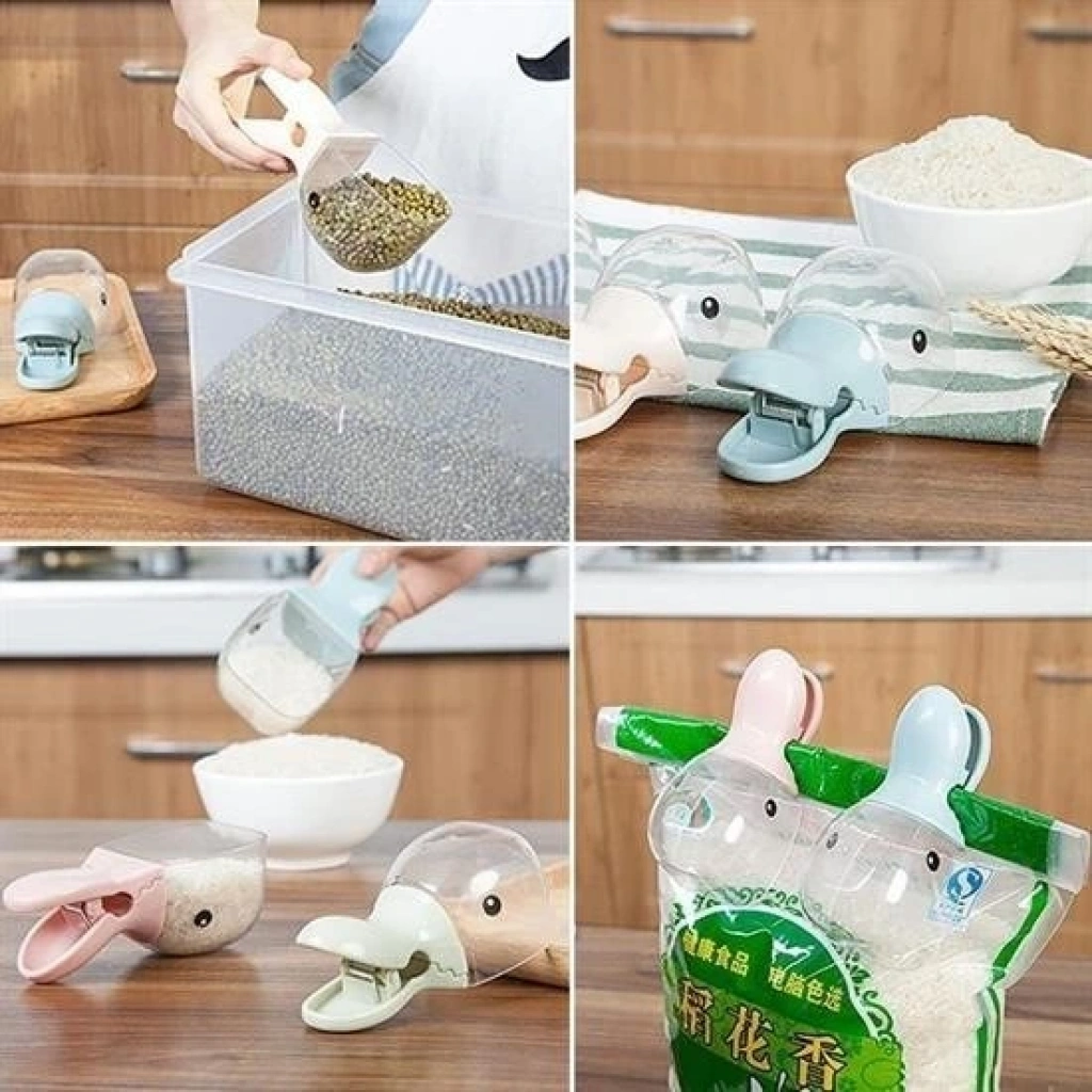 ® Ördek Tasarımlı Mandallı Tazelik Koruyan Ölçekli Kuru Mama Kaşığı Mama Ölçeği