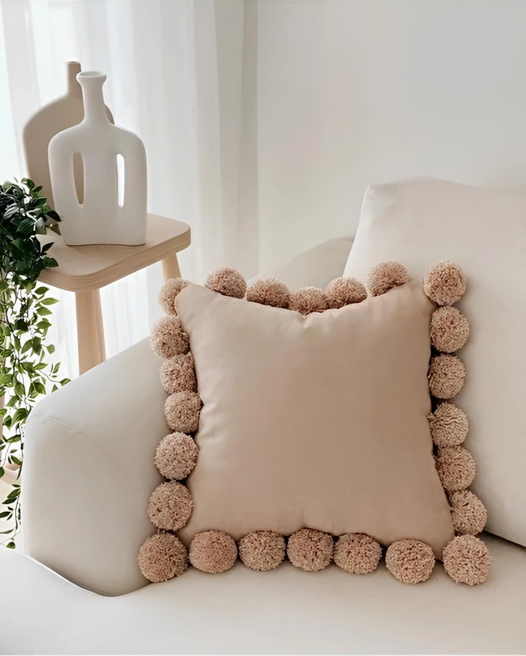 - Tek parça olarak sunulan ponponlu kırlent kılıfı, mekanınıza şık ve modern bir dokunuş katıyor.; - Düz tasarımıyla sade ve zarif bir görünüm sunan bu kırlent kılıfı, dekorasyonunuzda kolayca uyum sağlar.; - Kare şekliyle standart kırlentlerinize mükemmel uyum sağlayarak, estetik bir bütünlük oluşturur.; - Polyester materyali sayesinde dayanıklılık ve uzun ömürlü kullanım vaat eder.; - Türkiye'de üretilmiş olup, yerel üretim desteklenerek ekonomik katkıda bulunulur.; - Makine üretimi ile standartlara uygun olarak üretilmiş olup, kalite kontrol süreçlerinden geçmiştir.;