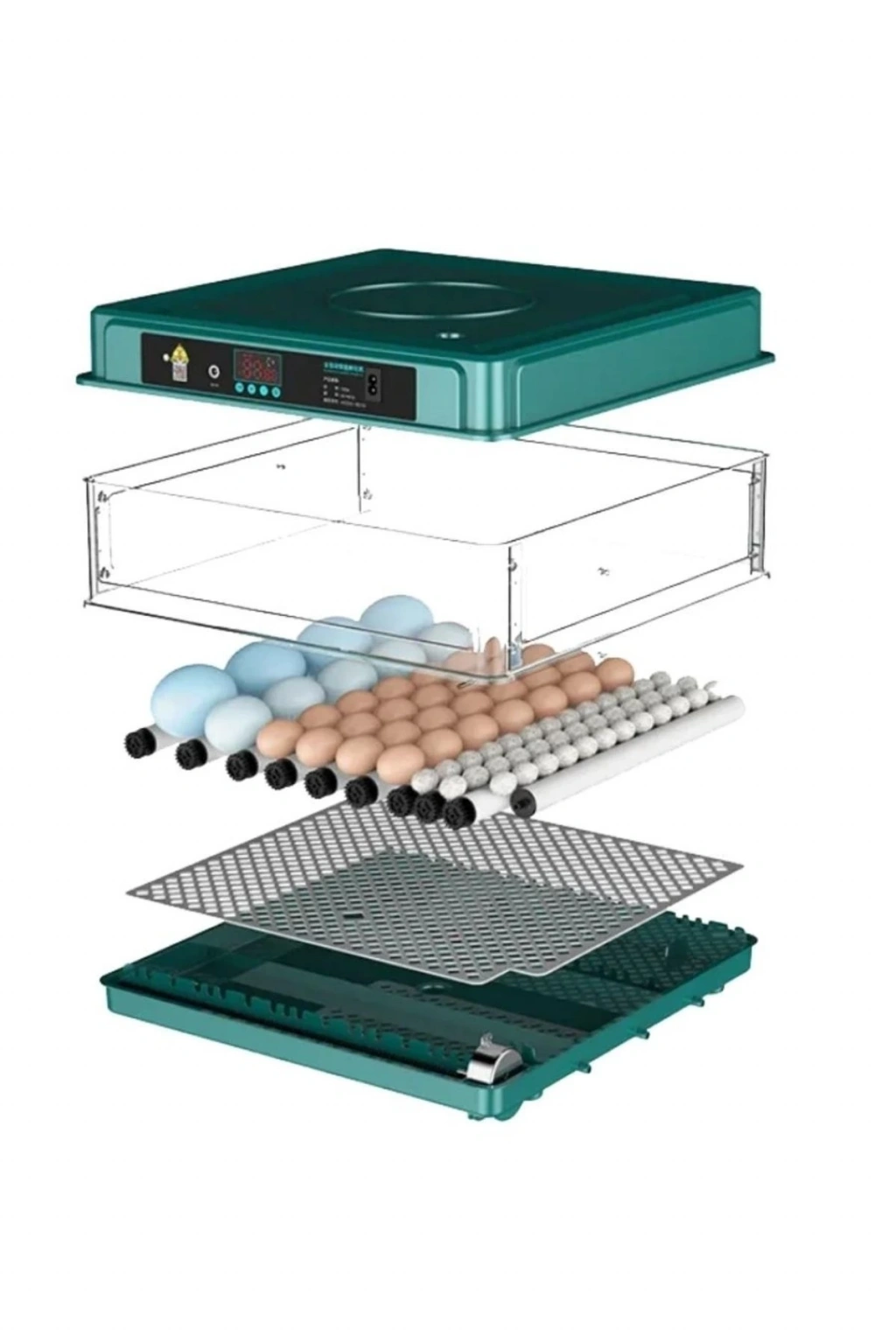 Otomatik yumurta çevirme sistemi yumurtaları her 2 saatte bir döndürür, dahili fan ve silindir viyol yapısı sayesinde sıcaklık ve nem eşit şekilde dağılır. Şeffaf üst kapak sayesinde süreci gözlemlemek kolaydır.
