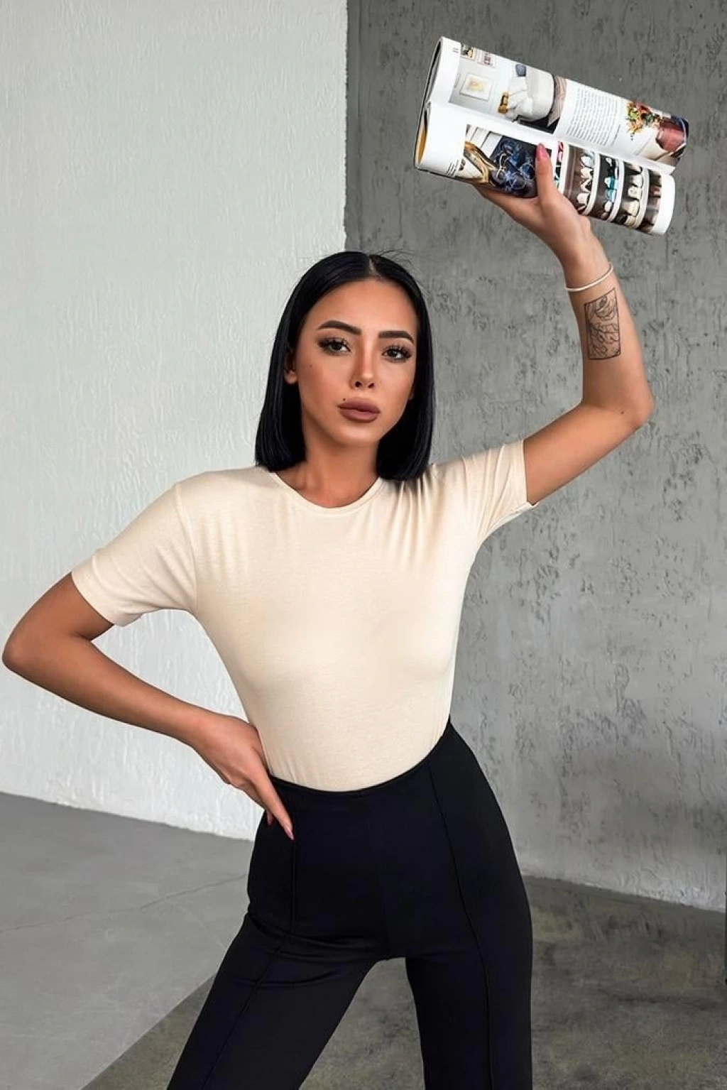 -Bu harika kısa kollu bisiklet yaka likralı bej viskon penye body, gardırobunuzun vazgeçilmez parçalarından biri olmaya aday! Rahatlığı ve şıklığı bir araya getiren bu body ile her an tarzınızı yansıtabilir ve kendinizi özgür hissedebilirsiniz.