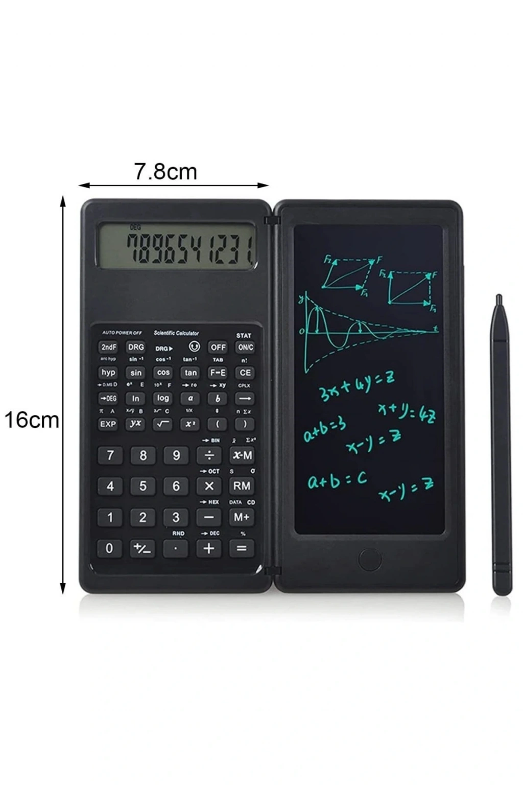 Silinebilir LCD Yazı Tabletli,Kalemli Katlanabilir Bilimsel Hesap Makinesi