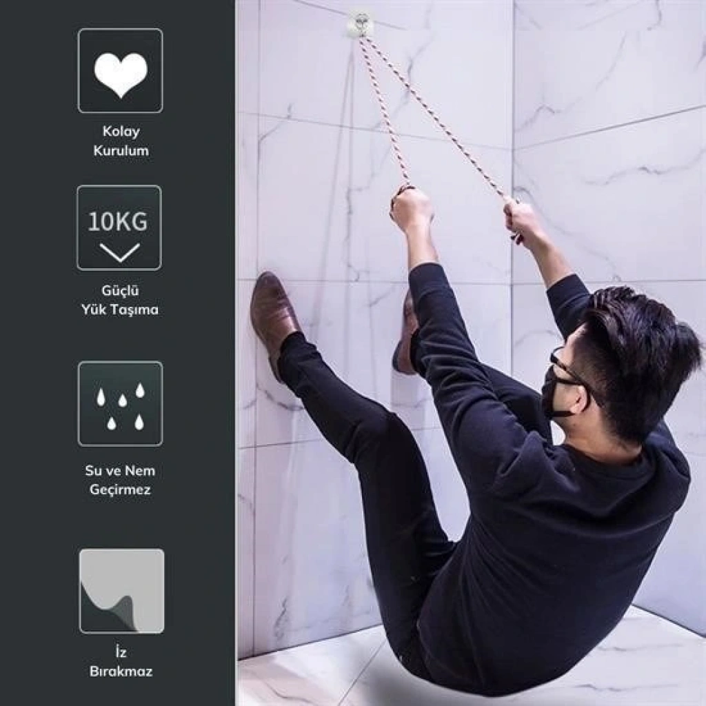 Kendinden yapışkanlı askı kancası yüksek kaliteli paslanmaz çelikten yapılmıştır, su geçirmezdir, temizlenmesi kolaydır ve uzun ömürlüdür Aksesuarları sıkıca yerine sabitleyebilirsiniz
