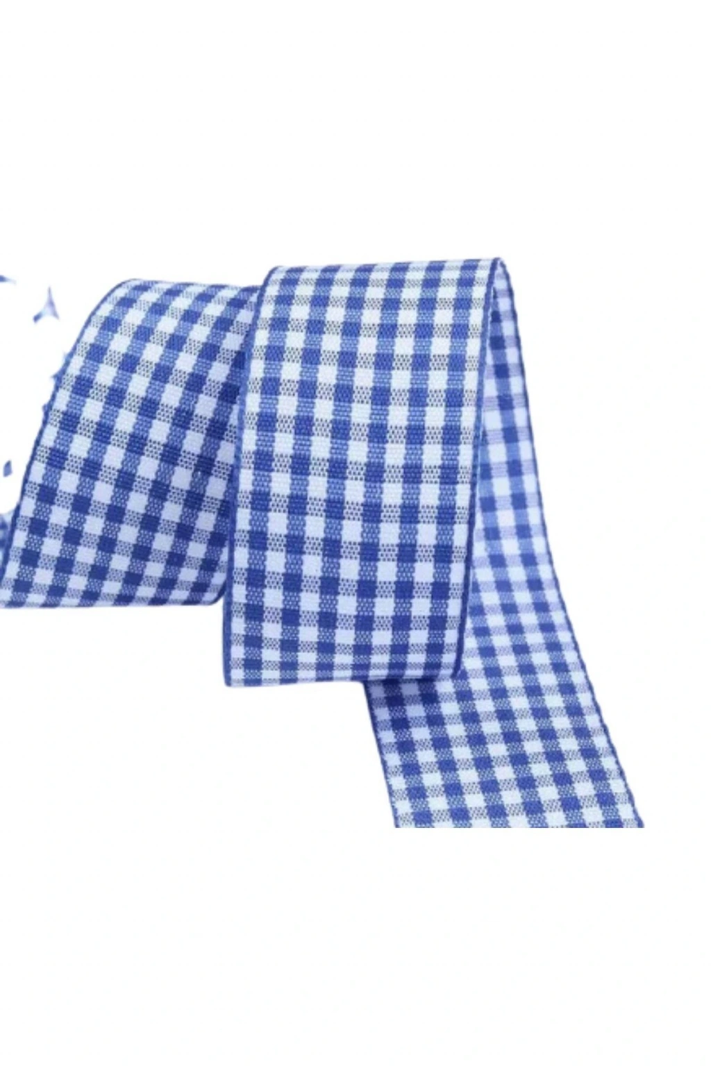 Tafta Ekoseli Kurdele 25 mm İndigo 10 Metre