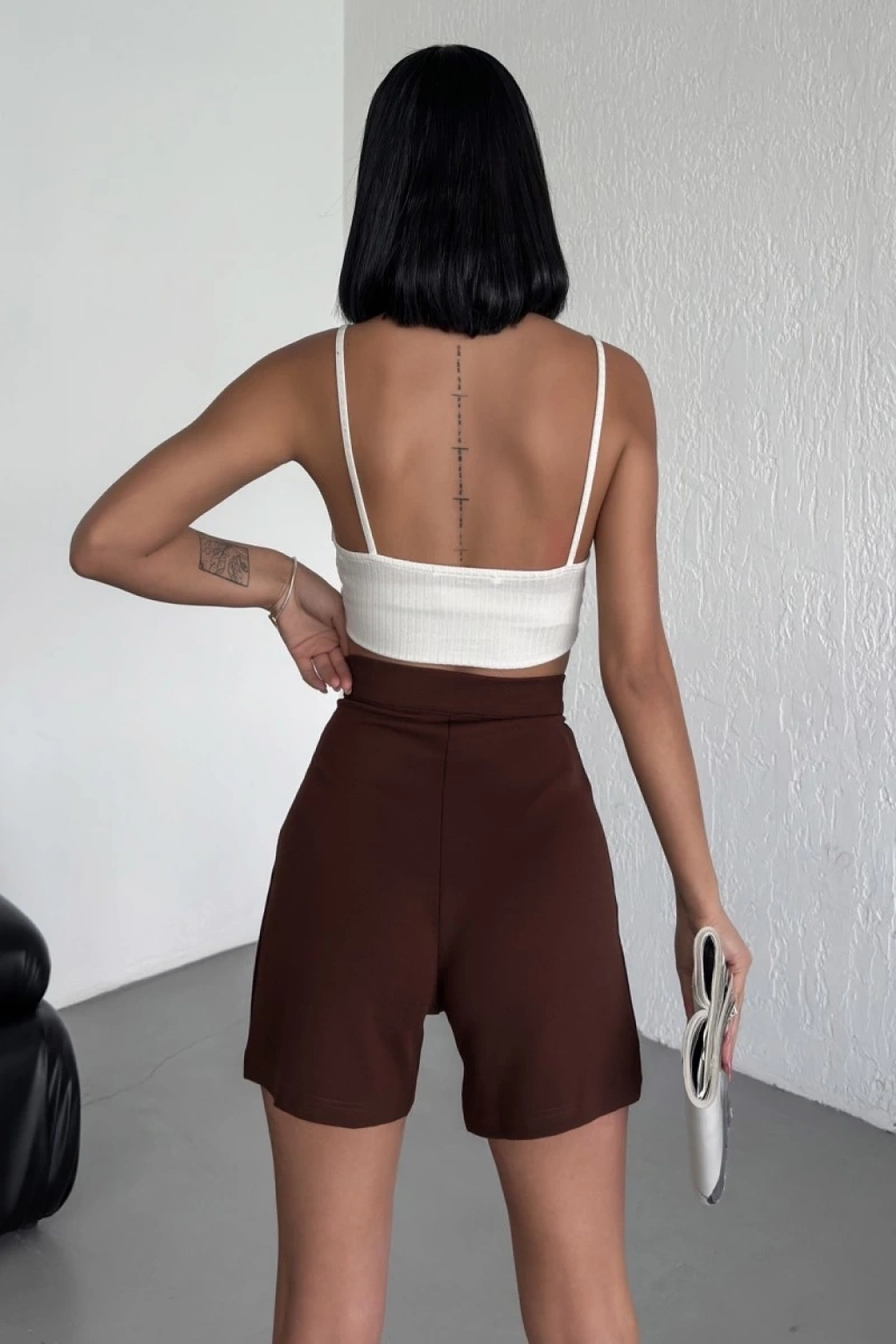-Gardırobunuzun canlı ve enerjik parçası haline gelecek bu kahverengi krep şortu, favori tişörtünüz veya gömleğinizle kombinleyerek kişisel tarzınızı yansıtabilir ve her ortamda dikkat çekici bir görünüm elde edebilirsiniz.
