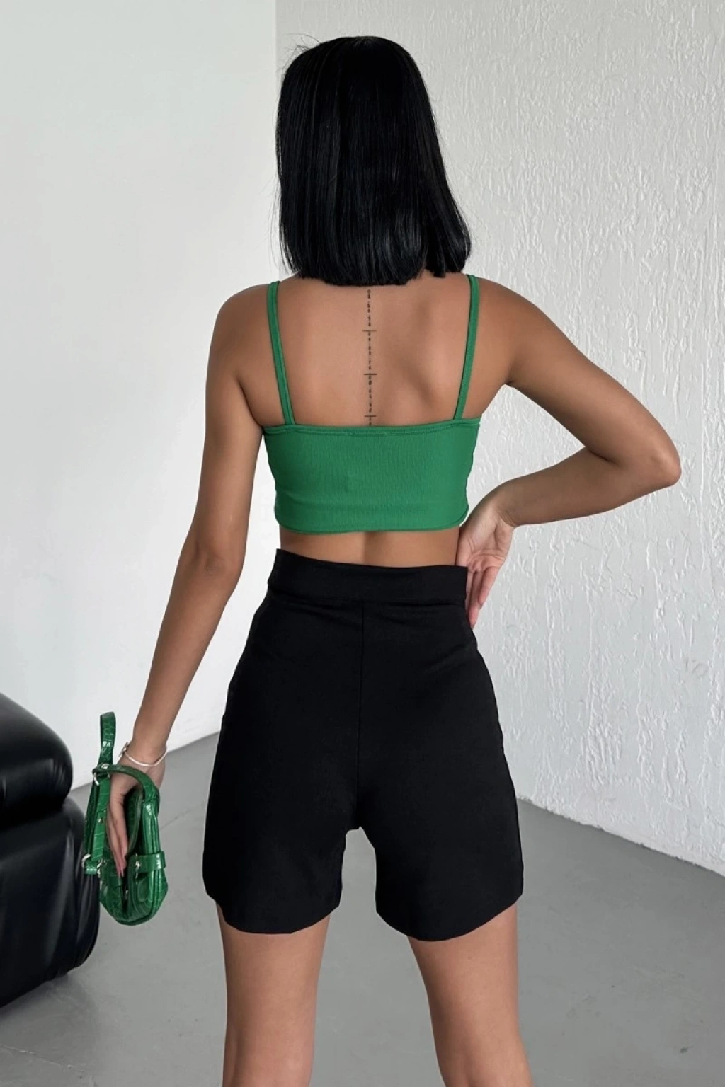 -Yazın ferahlatıcı tonlarını ve rahatlığını üzerinizde hissetmek istiyorsanız, siyah yüksek bel esnek likralı krep şort tam size göre! Tarzınızı ve konforunuzu bir arada yaşamak için bu şortu gardırobunuza ekleyin ve yazın keyfini çıkarın.