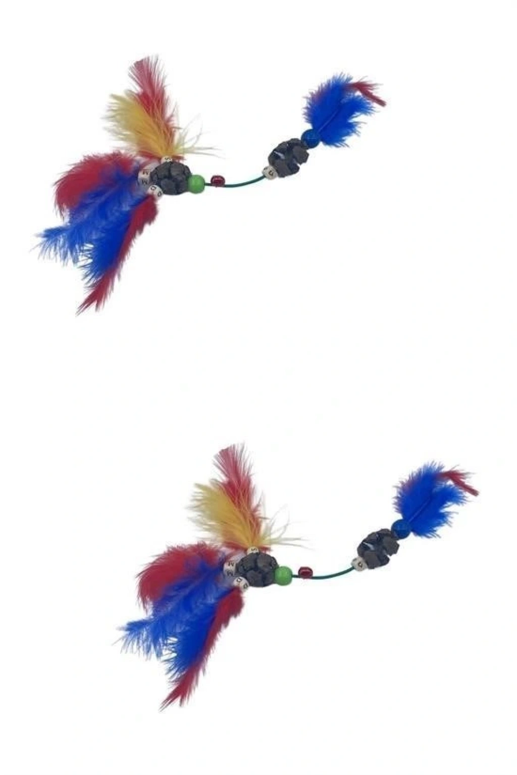 Bu kedi oyuncağı renkli tüyler tahta bir top ve bir zilden yapılmıştır Bu renkli ve parlak tüyler kediler için görsel simüle edici ve ses çıkartan zilli top ilgilerini çekmek için harikadır