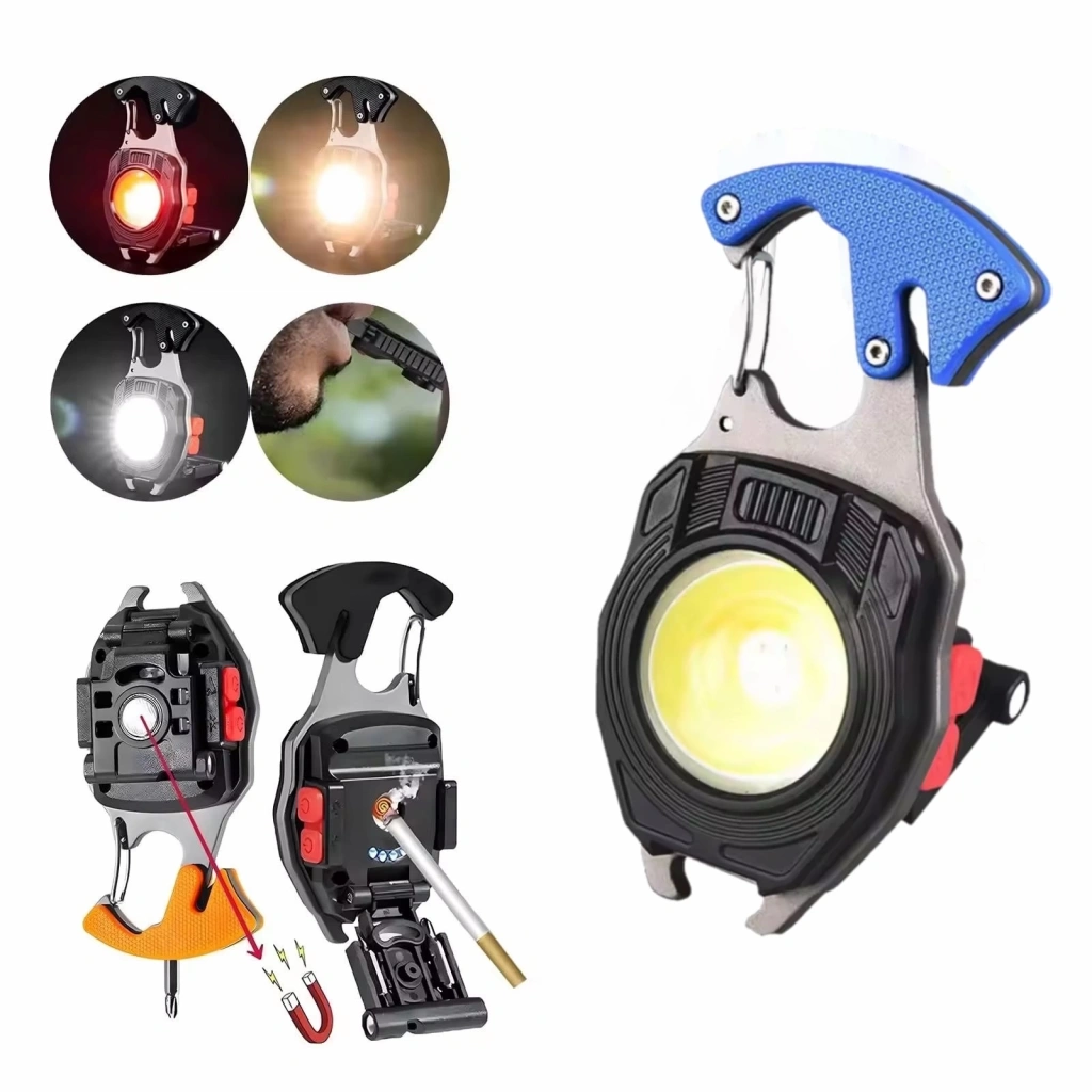 • Çok işlevli: Bu alüminyum alaşımlı anahtarlık el feneri, aydınlatma, şişe açacağı, çakmak, kesici, güçlü manyetizma, hayatta kalma düdüğü, kalem klipsi gibi birden çok işlevi birleştirir.