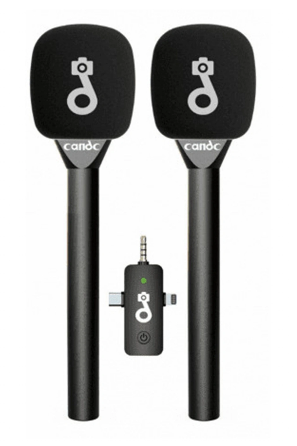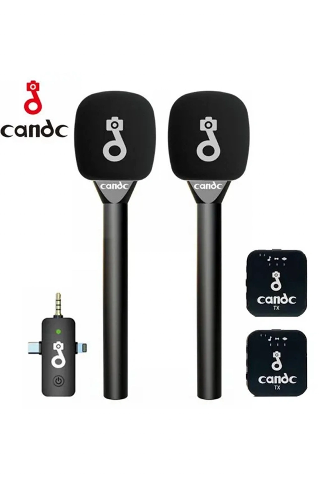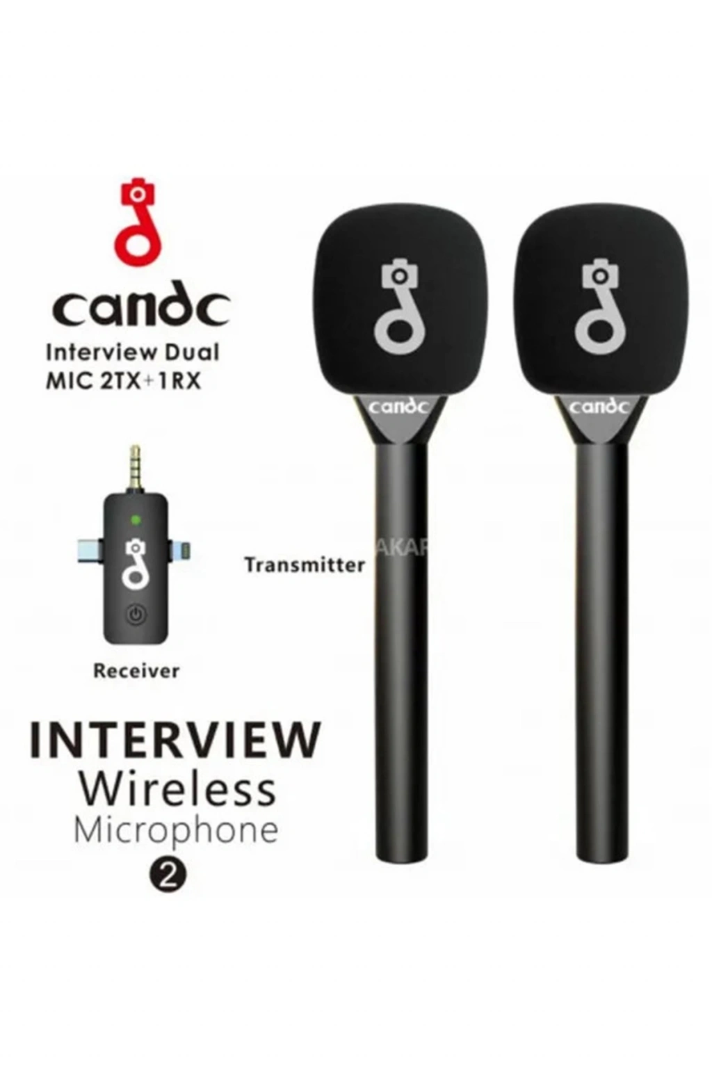 bir kablosuz mikrofon sistemi olan Candc Çift Mikrofonlu Kablosuz Röportaj Mikrofonu