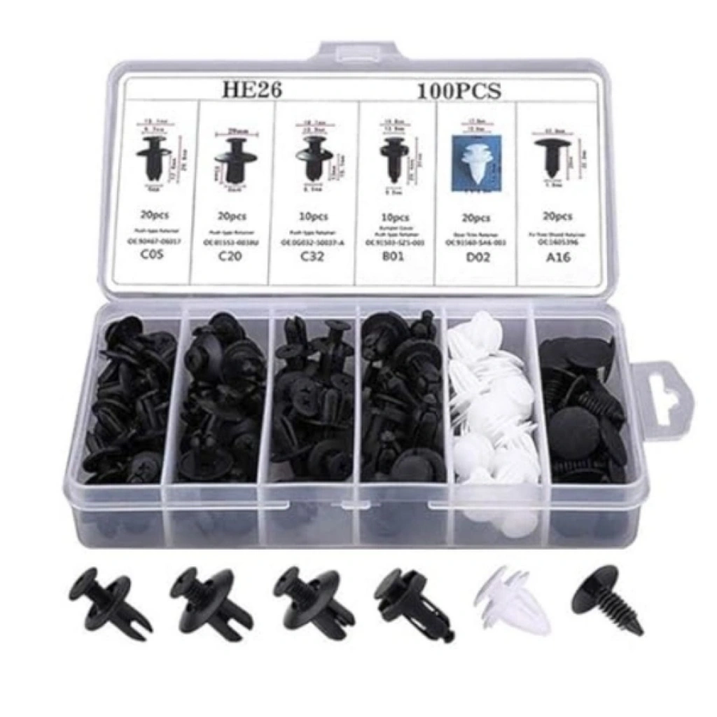 ÇOK AMAÇLI PLASTİK BAĞLANTI KLİPSİ SETİ 100 PARÇAÜrün ÖzellikleriÇok amaçlı plastik bağlantı klipsi seti 100 parça, araç bakım ve onarım işlemlerinde pratik, düzenli ve güvenilir bir kullanım sunmak üzere farklı ölçü ve tiplerde oto klipsi ile plastik perçinleri bir araya getirir. Tampon, kapı döşemesi ve trim parçalarının sabitlenmesinde ideal olan bu set, araç iç ve dış plastik aksamların montaj ve yenileme işlemlerinde geniş uyumluluk sağlar. Oto tampon ve çamurluk bağlantıları, kapı döşemeleri, iç trim parçaları, motor kaputu ve bagaj içi kaplamalar gibi birçok alanda güvenle kullanılabilir. Yüksek kaliteli plastikten üretilen klips ve perçinler darbelere ve titreşime karşı dayanıklıdır, uzun süreli kullanımda gevşeme yapmadan sağlam tutuş sunar. Özel tasarımı sayesinde klipsler kolayca takılıp sökülebilir ve bakım ile tamir süreçlerinde zamandan tasarruf sağlar. Setin bölmeli ve şeffaf saklama kutusu, parçaların karışmadan muhafaza edilmesine ve ihtiyaç duyulan klipse hızlıca ulaşılmasına imkân tanır. Ev kullanıcıları ve profesyonel oto servisleri için düzenli ve taşınabilir bir çözüm sunar.Paket İçeriği100 parça çok amaçlı plastik bağlantı klipsi ve perçin seti