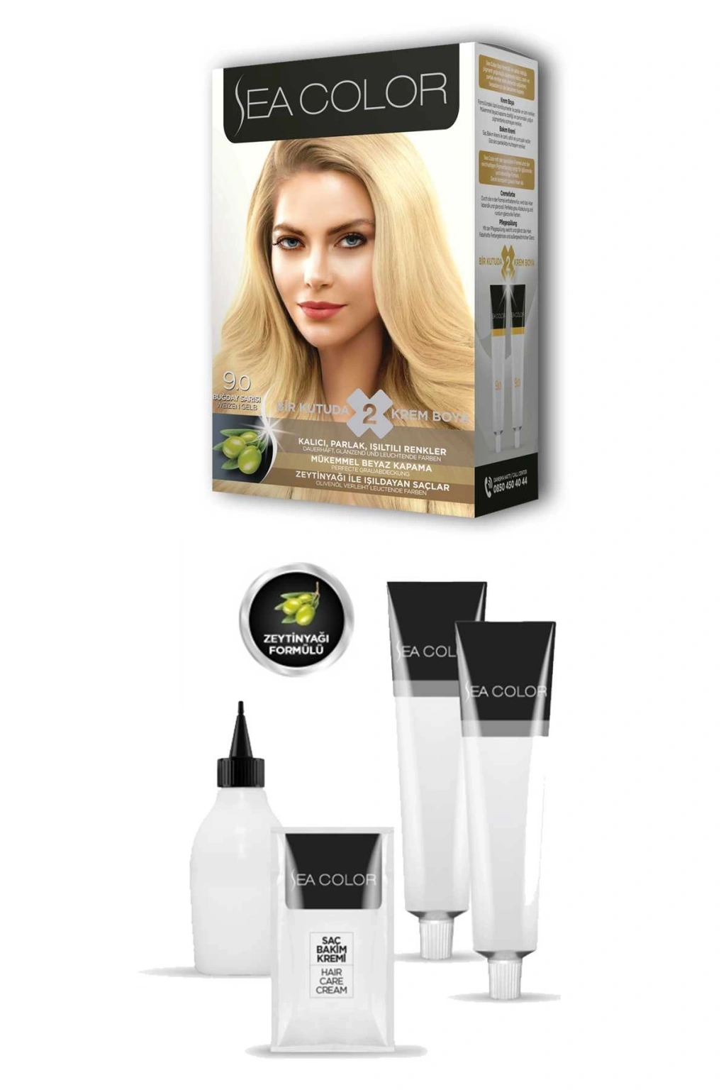 Sea Color 2X2 tüp Krem Saç Boyası Seti Buğday Sarısı No:9.0