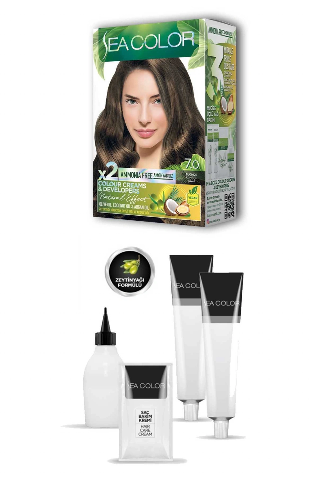 Sea Color 2X2 tüp Krem Saç Boyası Seti Kumral No:7.0