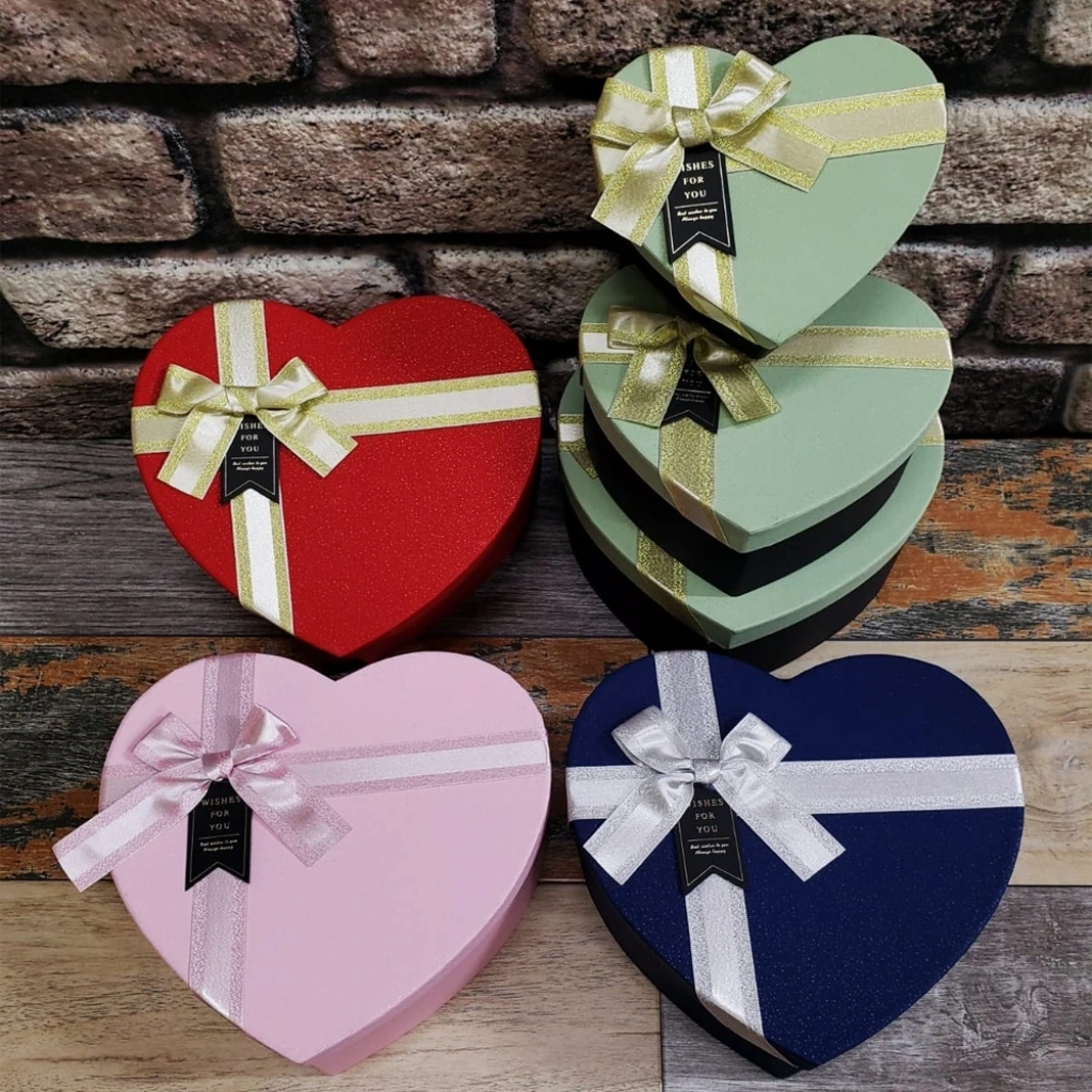 3'LÜ HEDİYELİK KALP KUTU SETİÜrün Özellikleri3'lü hediyelik kalp kutu seti, sert kartondan yapılmıştır ve şık bir tasarıma sahiptir. Farklı renk seçenekleriyle sunulmaktadır ve renklerde gönderim sağlanmaktadır. Büyük boy, orta boy ve küçük boy olmak üzere üç farklı boyutta gelen bu set, hediye vermek için ideal bir seçimdir. Kutular, hediye ve dekorasyon için şıklık katar.Büyük boy: 21 cm x 21.5 cm x 8.5 cm Orta boy: 17.5 cm x 18.5 cm x 7.5 cm Küçük boy: 14.5 cm x 15 cm x 6 cm Paket İçeriği1 Adet 3'lü Hediyelik Kalp Kutu Seti
