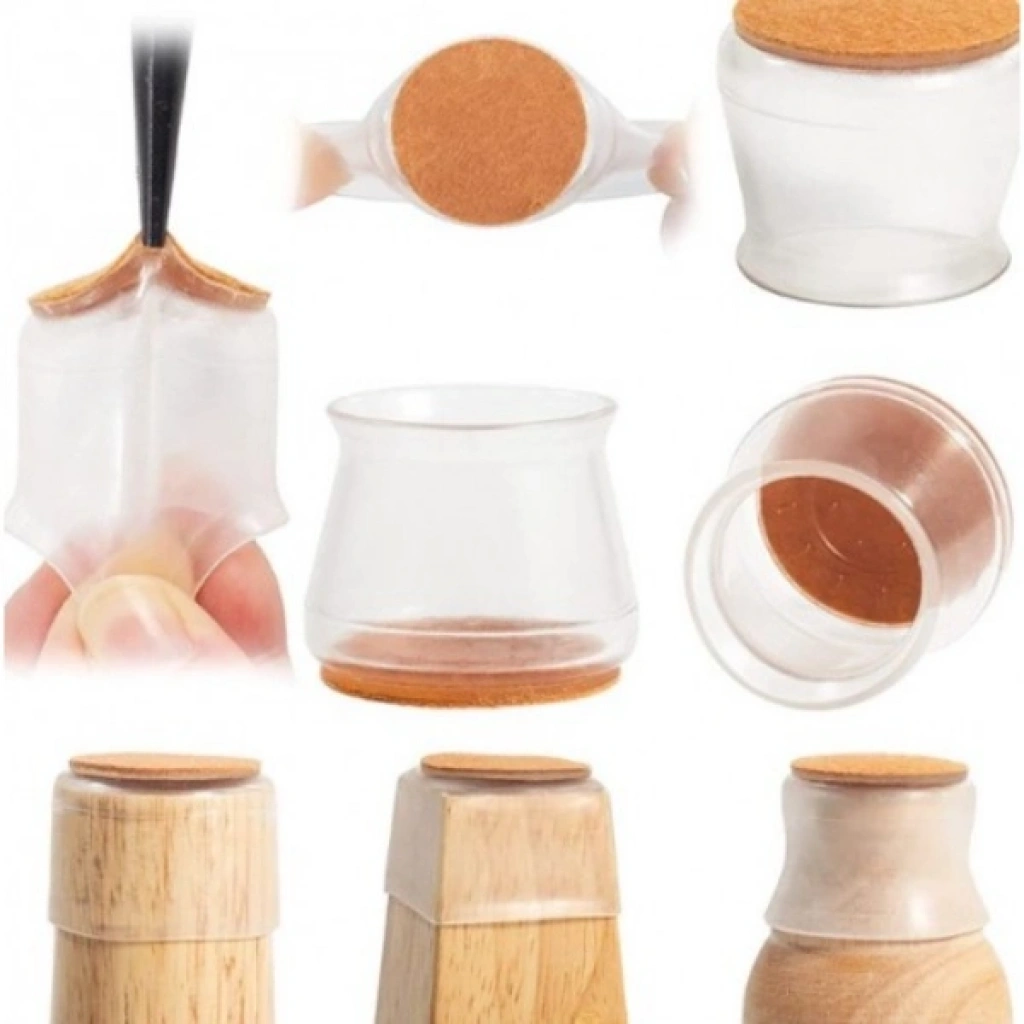 • 4'lü Keçeli Şeffaf Silikon Sandalye Ayak Koruyucu Seti