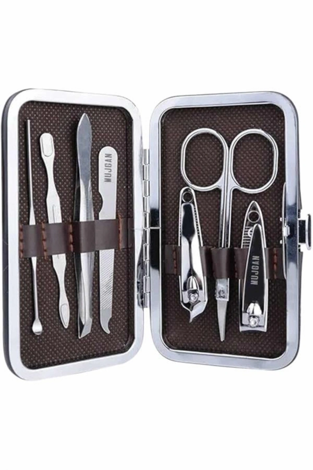 Evde el ve ayak bakımınızı zahmetsizce yak hem zamandan hem de kuaför masrafından tasarruf edebilirsiniz. Şık ve taşınabilir tasarımı sayesinde çantanızda kolayca taşıyabilir, seyahatlerinizde yanınızda bulundurabilirsiniz. Paslanmaz çelikten üretilmiş dayanıklı aletleri ile uzun ömürlü kullanım sunan bu set, kaş makası, tırnak makası, akne ve sivilce temizleyici, cımbız, et kaldırcı, kulak temizleme atı ve et tırnak makasından oluşmaktadır. Günlük bakımınızı her yerde yapabilmeniz için tasarlanan bu pratik ve şık set, hem kişisel kullanım hem de sevdikleriniz için ideal bir hediye alternatifidir.
