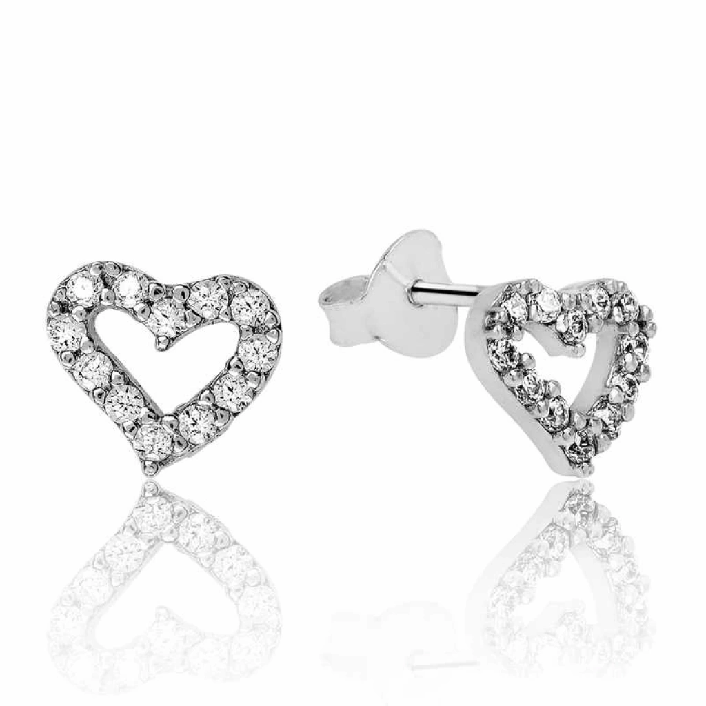 925 Ayar Gümüş Beyaz Kalpli Çivili Küpe Ea1160089 (599)