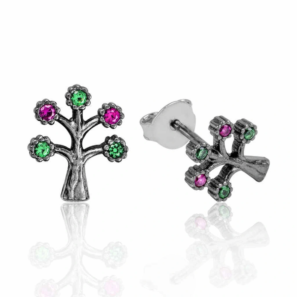 Hayat ağacı yeni bir yaşamı sembolize ediyor. Bunun yanında dünyada iz bırakmak, soyunu devam ettirme amacı yani ailenin simgesi anlamına gelmektedir. Bu şık küpe; 925 ayar gümüşten imal edilmiştir. Gümüş üzerine oksit kaplama yapılmıştır. Oksit kaplama yapılan ürünler parlaklığını uzun süre muhafaza eder. Üzerinde bulunan taşlar zirkondur. Tüm gümüş çivili küpe modellerinde olduğu gibi gümüş hayat ağacı çivili küpe modeli de el emeği ile üretilmiştir. Gümüş ve değerli taşlar nedeniyle belirtilen ortalama ürün ağırlığında ± %10 sapma olabilmektedir.
