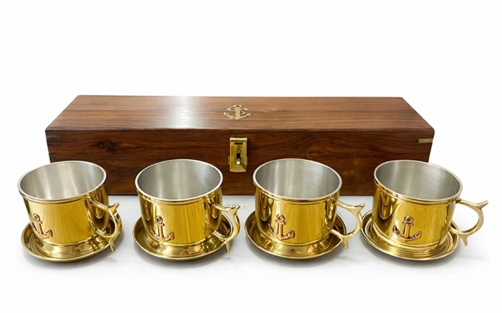Ahşap Kutulu 4'Lü Pirinç Fincan Seti 4162 Ürün Ölçüleri 38*10 Cm