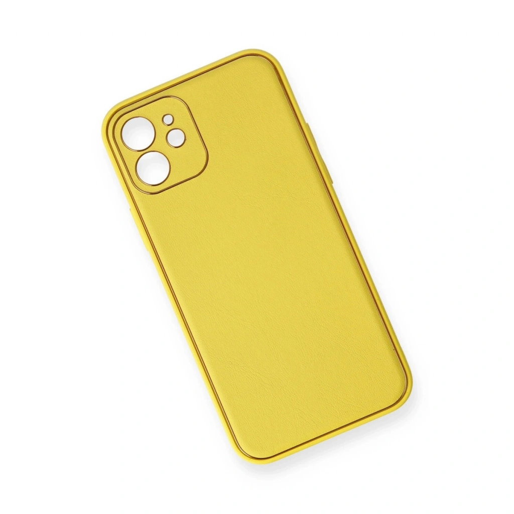 • Apple İphone 12 Kılıf Coco Deri Silikon Kapak - Sarı