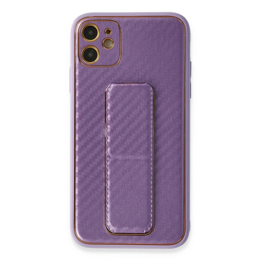 • Apple İphone 12 Kılıf Coco Karbon Standlı Kapak - Mor