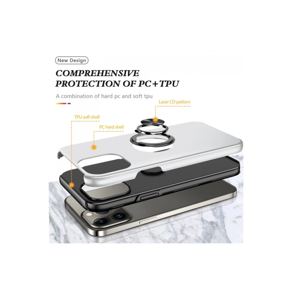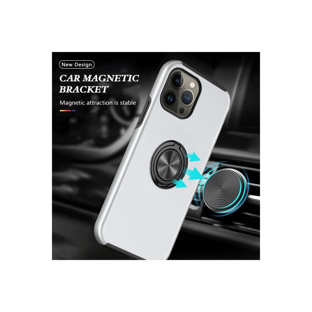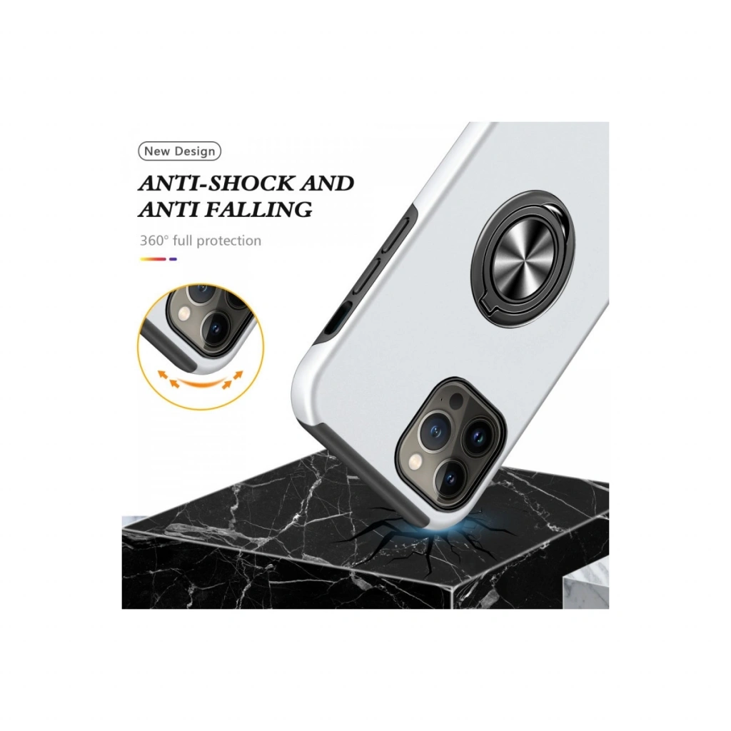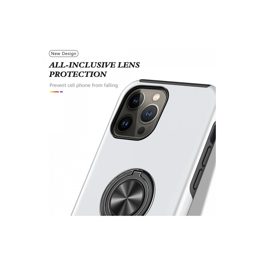 • Apple İphone 13 Pro Kılıf Elit Yüzüklü Kapak - Gümüş
