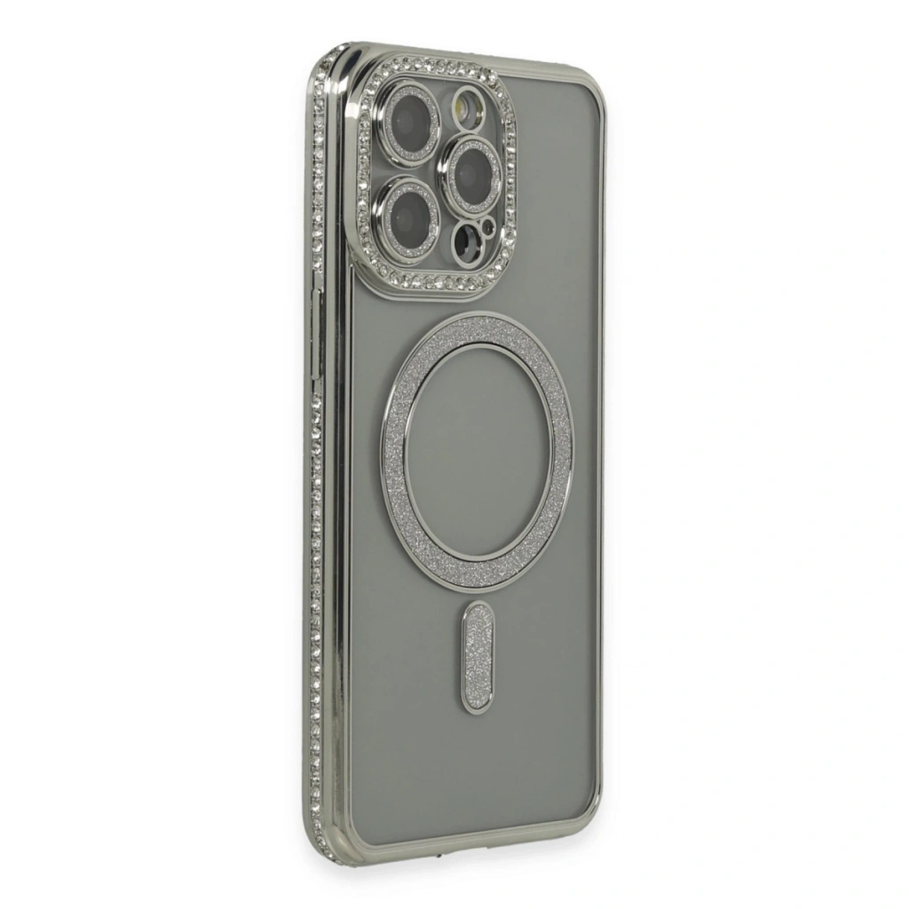 Apple İphone 15 Pro Kılıf Joke Simli Magneticsafe Kılıf - Gri