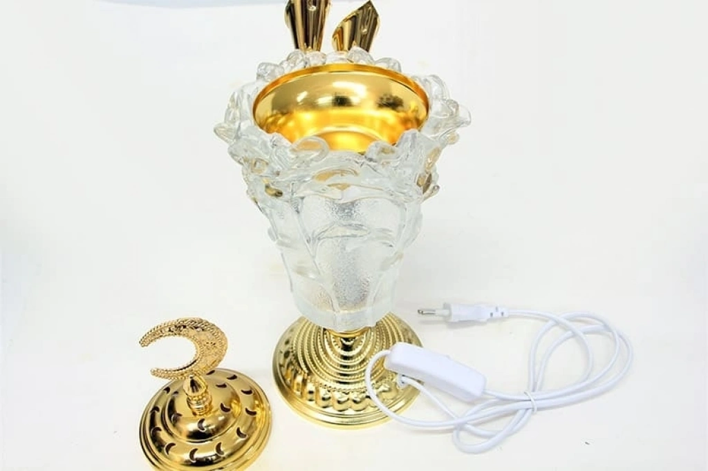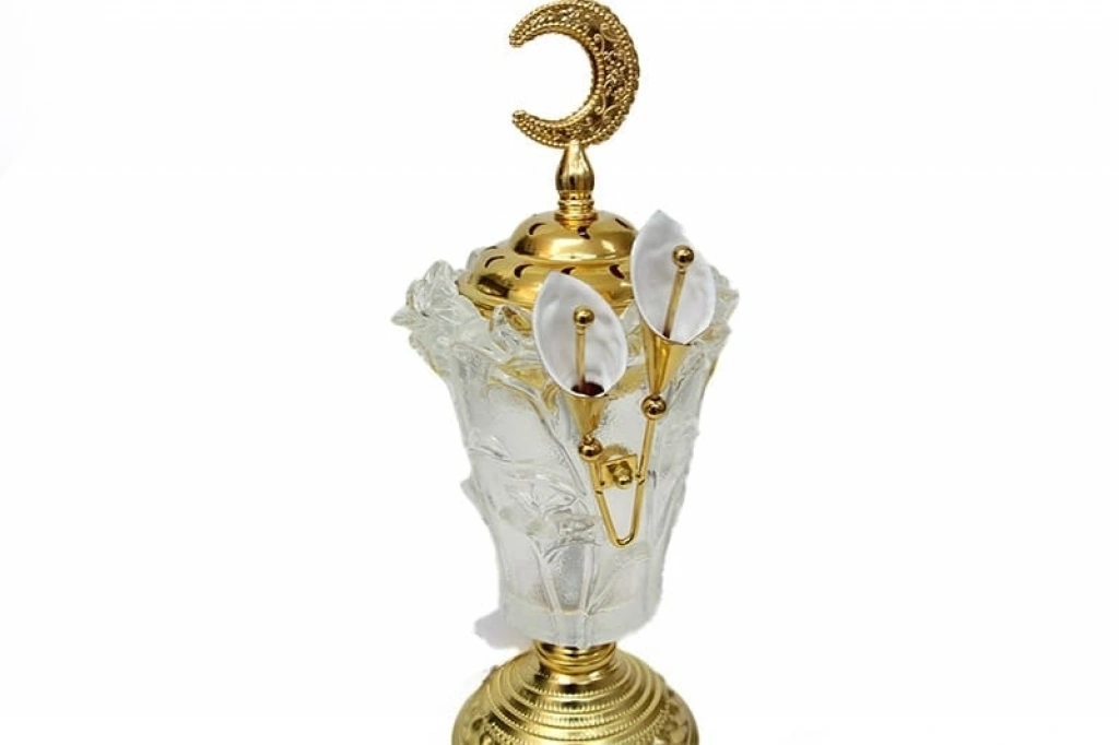 • Buhurdanlık Cam Altın Dekorlu Kapak Ve Ayak