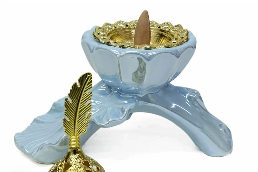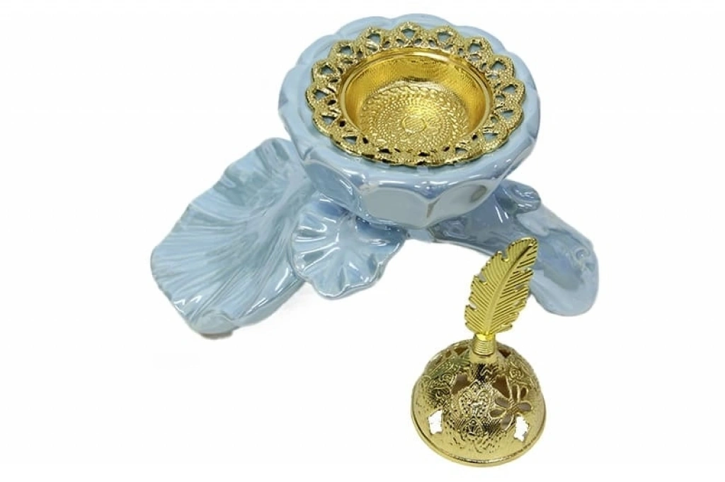 • Buhurdanlık Seramik Yaprak Ve Çiçek Altın Kapak Dekorlu