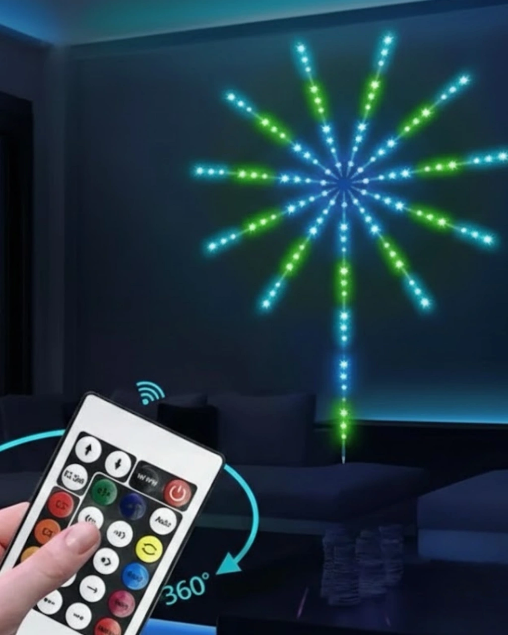 Dekoratif RGB LED Duvar Işığı Havai Fişek Tasarımlı Akıllı Aydınlatma, iç mekânlarda görsel etkiyi ön planda tutan kullanıcılar için geliştirilmiş modern bir üründür. Duvara monte edilen yıldız patlaması formu, mekâna derinlik ve dinamizm kazandırır. Sadece bir ışık kaynağı değil, aynı zamanda dekoratif bir tasarım öğesidir.Modüler ve sökülebilir LED kollar, ürünü son derece esnek hale getirir. Kollar farklı açılarda yerleştirilebilir ve kişisel tasarımlar oluşturulabilir. Bu yapı sayesinde her kullanıcı kendi yaşam alanına uygun bir görünüm elde edebilir. Kurulum ve sökme işlemleri pratiktir.RGB LED aydınlatma sistemi, geniş renk yelpazesi ve farklı efekt modları sunar. Sakin ve yumuşak renklerle huzurlu bir ortam yaratılabilirken, canlı ve hareketli modlarla enerjik bir atmosfer oluşturulabilir. Uzaktan kumanda ile temel kontroller kolayca sağlanır.Mobil uygulama desteği, ürünü daha akıllı ve kullanışlı hale getirir. Renk seçimi, parlaklık ayarı, efekt hızı ve mod geçişleri uygulama üzerinden detaylı şekilde kontrol edilebilir. Müzik senkronizasyon modu sayesinde ışıklar sesle uyumlu şekilde hareket eder.USB ile çalışan yapısı, ürünü enerji tasarruflu ve pratik hale getirir. Farklı güç kaynaklarıyla kullanılabilmesi sayesinde esnek bir kullanım sunar. Düşük enerji tüketimi ve güvenli yapısı ile uzun süreli kullanım için uygundur.Dekoratif RGB LED Duvar Işığı, modern tasarımı, teknolojik özellikleri ve es görünümüyle ev dekorasyonunda fark yaratmak isteyenler için güçlü bir seçenektir.