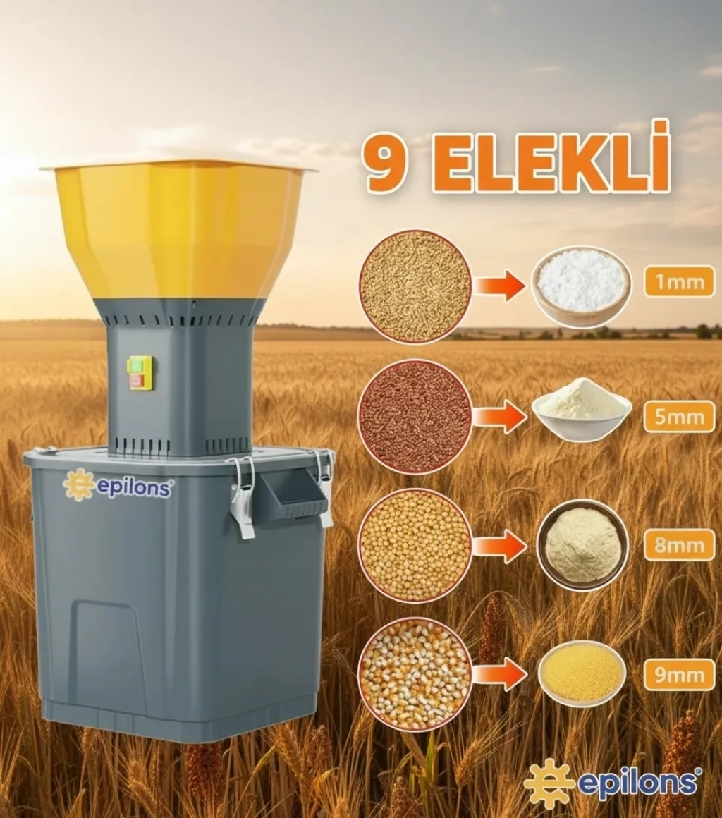 Epilons 55l 1300 W Profesyonel Tahıl Yem Öğütücü – 9 Paslanmaz Elek Hediyeli