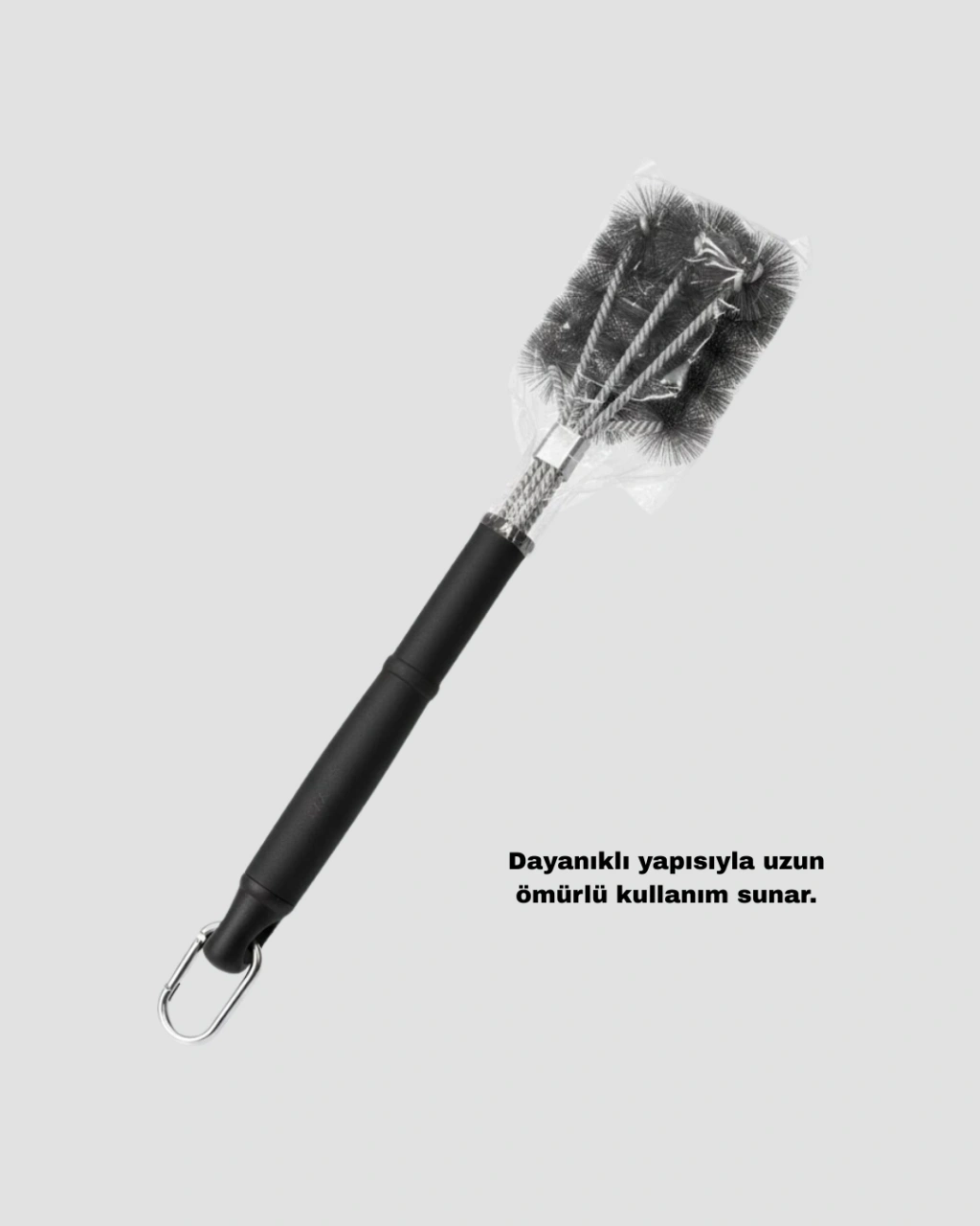Grill ve mangal kullanıcıları için geliştirilen bu ızgara temizleme fırçası, pratik ve etkili bir temizlik deneyimi sunar. Paslanmaz çelik telli yapısı, zorlu kalıntıları kolayca sökerken uzun saplı tasarımı ile güvenli kullanım sağlar.Bahçe mangalları, balkon barbeküleri ve piknik ızgaralarında rahatlıkla kullanılabilir. Dayanıklı yapısı sayesinde sık kullanıma uygundur. Mangal keyfinden sonra hızlı ve zahmetsiz temizlik isteyenler için ideal bir temizlik atıdır.