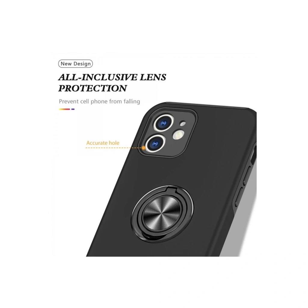 • İphone 12 Kılıf Elit Yüzüklü Kapak - Siyah