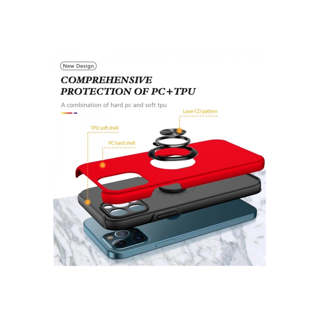 • İphone 12 Pro Max Kılıf Elit Yüzüklü Kapak - Kırmızı