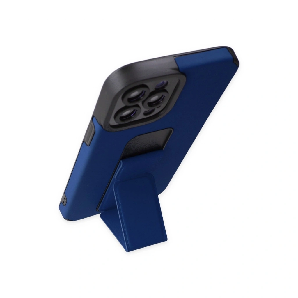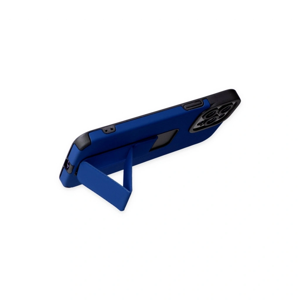 • İphone 12 Pro Max Kılıf Mega Standlı Silikon - Mavi
