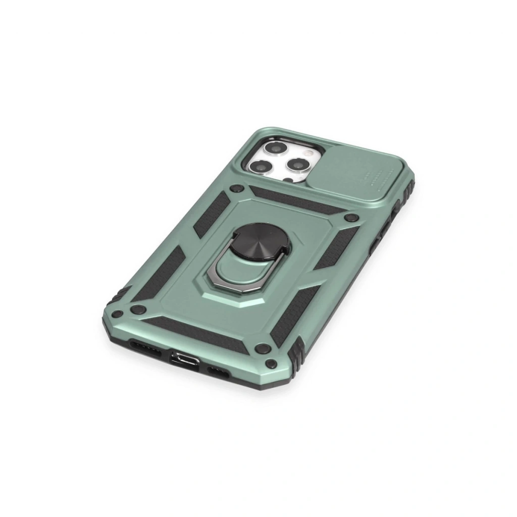 • İphone 12 Pro Max Kılıf Pars Lens Yüzüklü Silikon - Yeşil