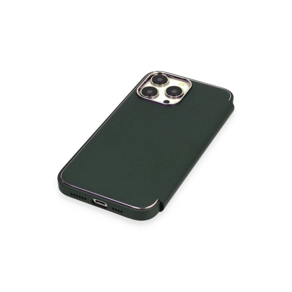 • İphone 13 Pro Kılıf Dolpin Kapaklı - Koyu Yeşil