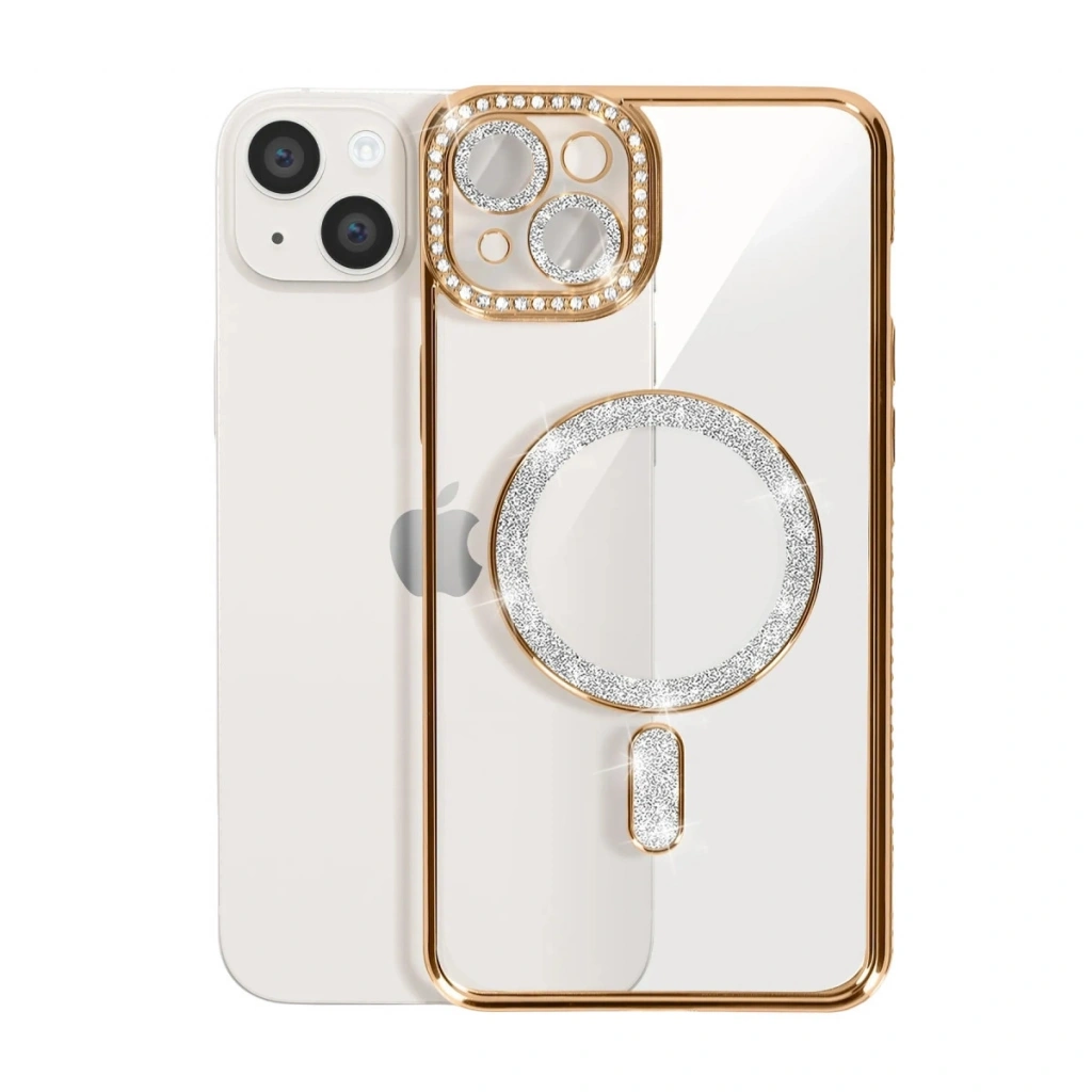• İphone 14 Kılıf Joke Simli Magneticsafe Kılıf - Gold