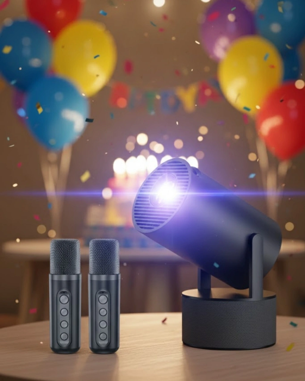 Siyah fişli karaoke projeksiyon cihazı, ev eğlencesini sosyal bir deneyime dönüştüren güçlü bir multimedya sistemidir. Yüksek çözünürlüklü projeksiyon teknolojisi ile geniş ekran görüntü sunarken, çift kablosuz mikrofon sistemi sayesinde gerçek bir karaoke sahnesi atmosferi oluşturur.Karaoke özelliği, cihazın en önemli avantajlarından biridir. İki mikrofon desteği ile aynı anda iki kişi şarkı söyleyebilir. Bu özellik özellikle düet performansları ve grup eğlenceleri için büyük kolaylık sağlar. Mikrofonlar net ses iletimi sunar ve hoparlör sistemi ile uyumlu çalışarak yüksek kaliteli ses deneyimi oluşturur.Dahili Bluetooth hoparlör, güçlü bas ve dengeli tiz performansı sunar. Hem müzik dinleme hem karaoke hem de film izleme sırasında etkileyici bir ses deneyimi sağlar. 1080P çözünürlük sayesinde şarkı sözleri ve müzik videoları net ve canlı şekilde yansıtılır.180° dönebilen projeksiyon başlığı farklı yüzeylere yansıtma imkanı sunar. Duvar, perde veya tavan kullanımı mümkündür. Fişli tasarımı sayesinde uzun süreli ve kesintisiz kullanım sağlar.WiFi ve Bluetooth bağlantı seçenekleri sayesinde telefon, tablet ve diğer cihazlarla kolay entegrasyon sunar. USB ve HDMI girişleri ile farklı medya kaynakları bağlanabilir.Modern siyah tasarımı ile es görünüm sunan bu karaoke projeksiyon sistemi, ev partileri, doğum günleri ve aile eğlenceleri için ideal bir çözümdür.