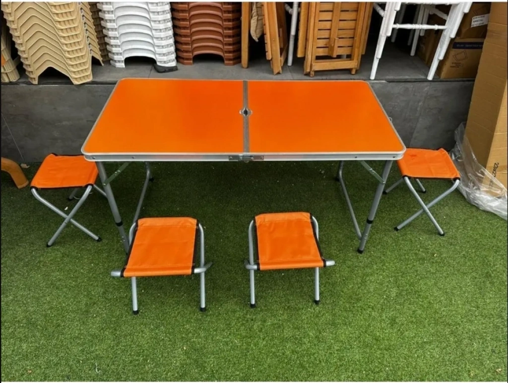 Katlanabilir Alüminyum Kamp Masa 4'lü Tabure Seti
