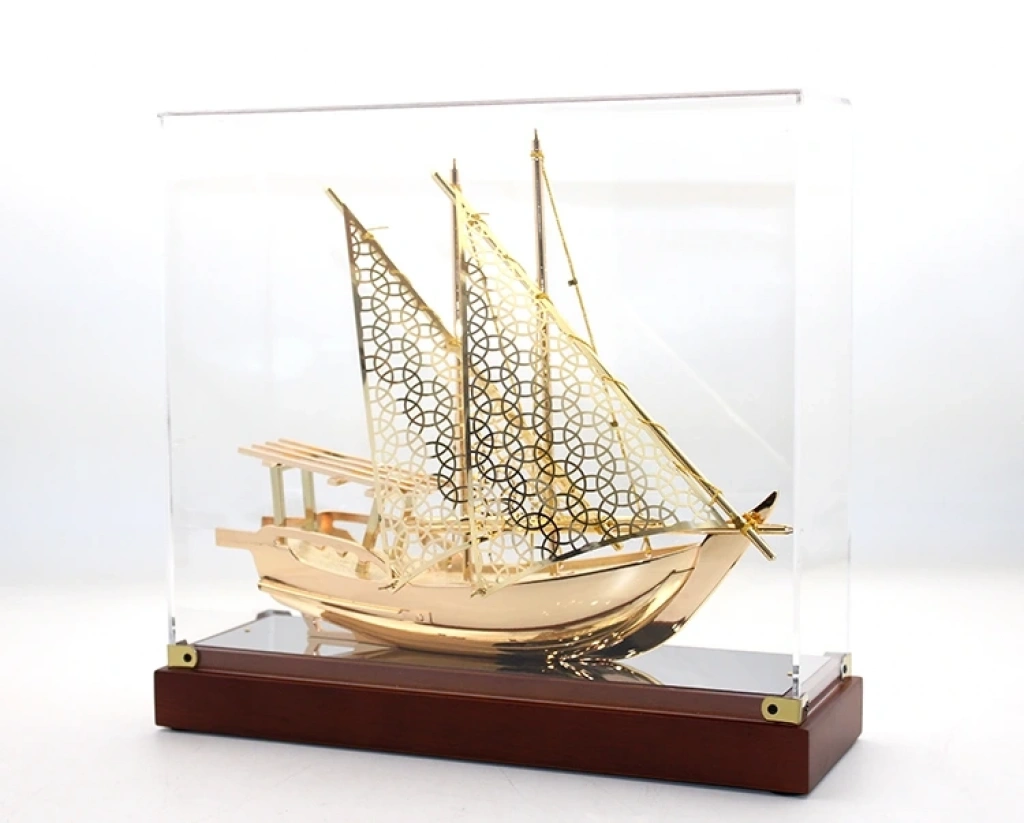 KUTULU PİRİNÇ GEMİ BÜYÜK BOYÜrün ÖzellikleriKutulu pirinç gemi modeli, ince işçilikle hazırlanmış dekoratif bir koleksiyon parçasıdır. Pirinçten üretilmiş sağlam gövdesi ve detaylı yelken tasarımıyla hem deniz tutkunlarının hem de koleksiyon meraklılarının beğenisini kazanır. 29x26 cm ölçüleriyle vitrin, masa ya da raflarda şık bir sergileme imkânı sunar. Özel kutusu sayesinde tozdan korunarak uzun yıllar boyunca estetik görünümünü muhafaza eder. Denizcilik temalı dekorasyonlarda zarif bir tamamlayıcı obje olarak öne çıkar.Paket İçeriği1 adet Kutulu Pirinç Gemi Büyük Boy