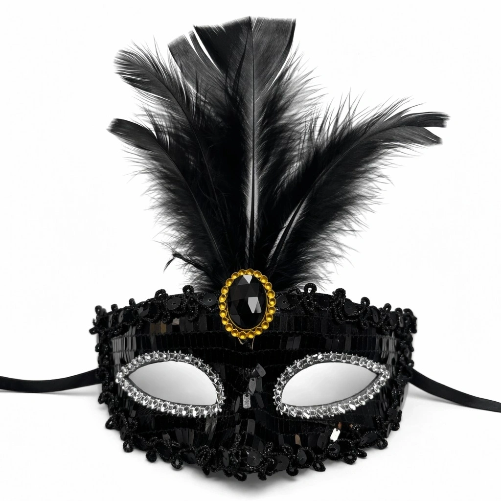 Gizemli ve güçlü bir stil arayanlar için tasarlanan Siyah Tüylü Taşlı Balo Maskesi, özel davetlerde ve konsept partilerde dikkatleri üzerinize çekmenizi sağlar.