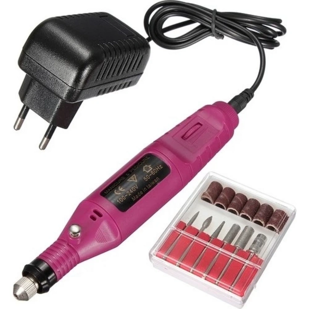 Elektrikli Manikür Pedikür Makinesi Seti 6 Adet Metal Uç 6 Adet Zımpara Priz Dönüştürücü Aparat Pakete Dahildir