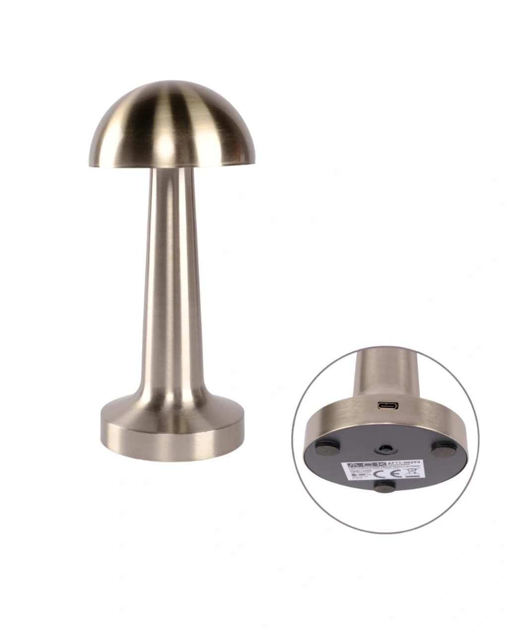 Mantar Masa Lambası Dokunmatik 3 Renk Işık Şarjlı Kablosuz Modern Krom Tasarım